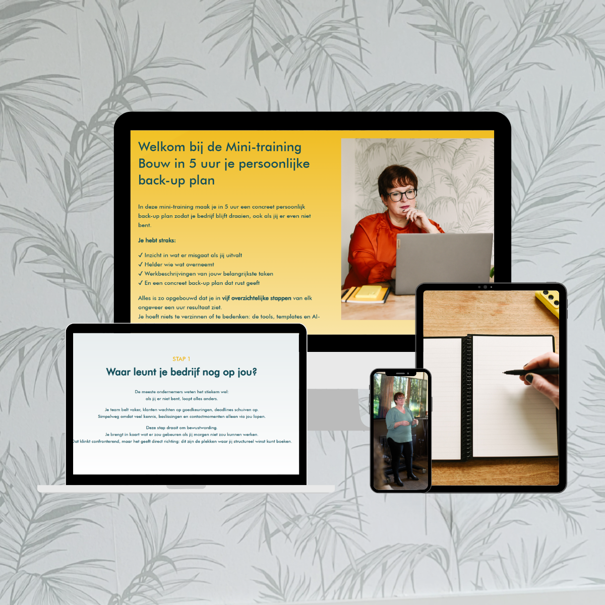 Bouw in 5 uur jouw back-up plan zodat je virtueel (assistent) of team exact weet wat ze moeten doen als jij er (even) niet bent. En jij écht weg kunt zonder stress. (toegang per 15 november 2025)
